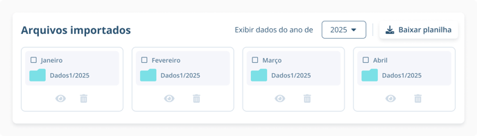 Quando a importação for concluída, você poderá ver na tabela direita os meses importados, como o exemplo abaixo: