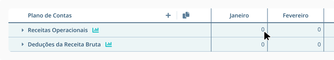 Para preencher as informações, você deve digitar os valores de cada mês na sua respectiva coluna, seguindo as contas do Plano Financeiro.