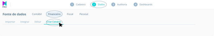 Para criar cenários, é preciso já ter inserido dados, seja por Importação, Integração ou Edição.